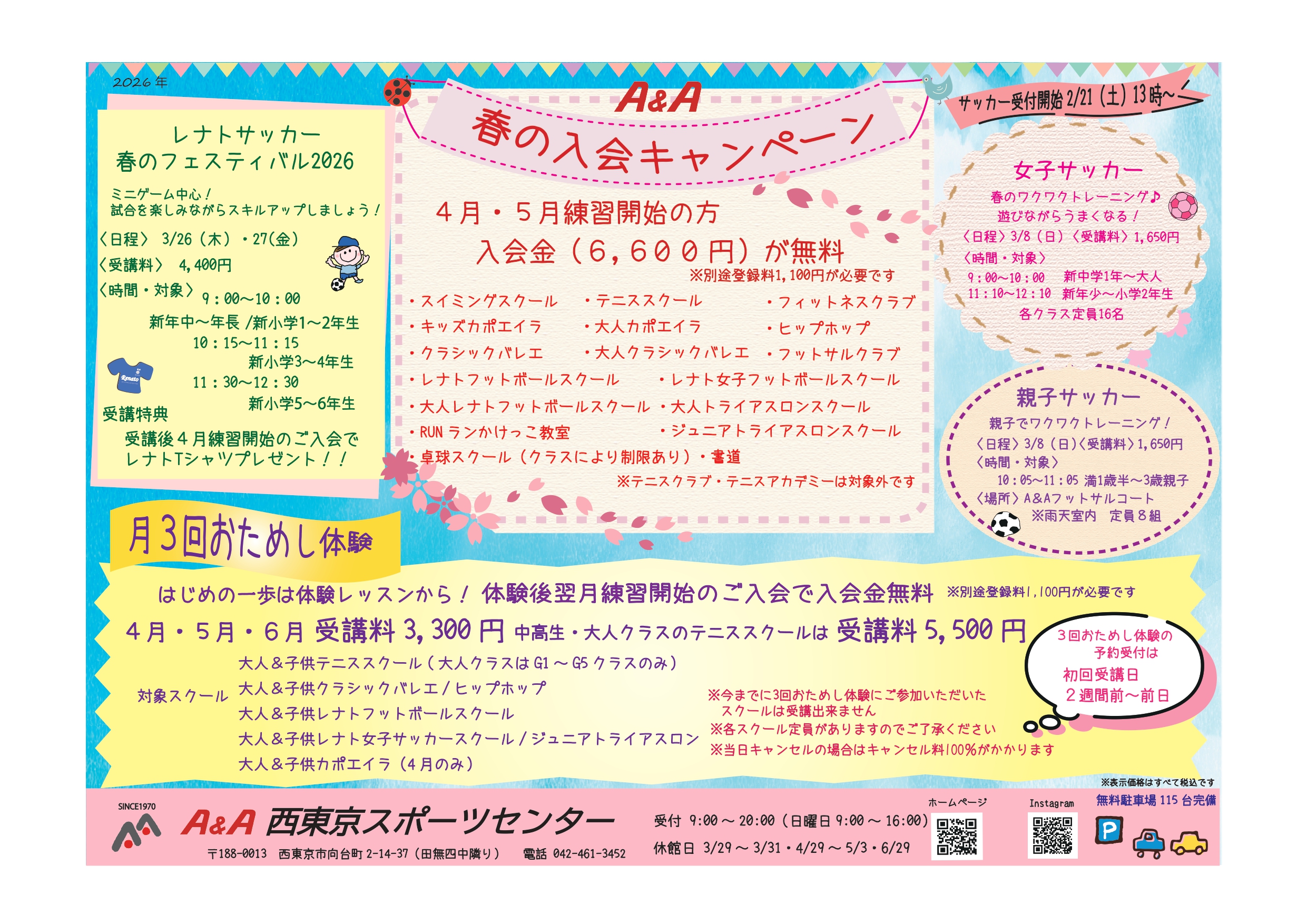 | 体験レッスン | 見学 | クラブ・スクール名 | ||