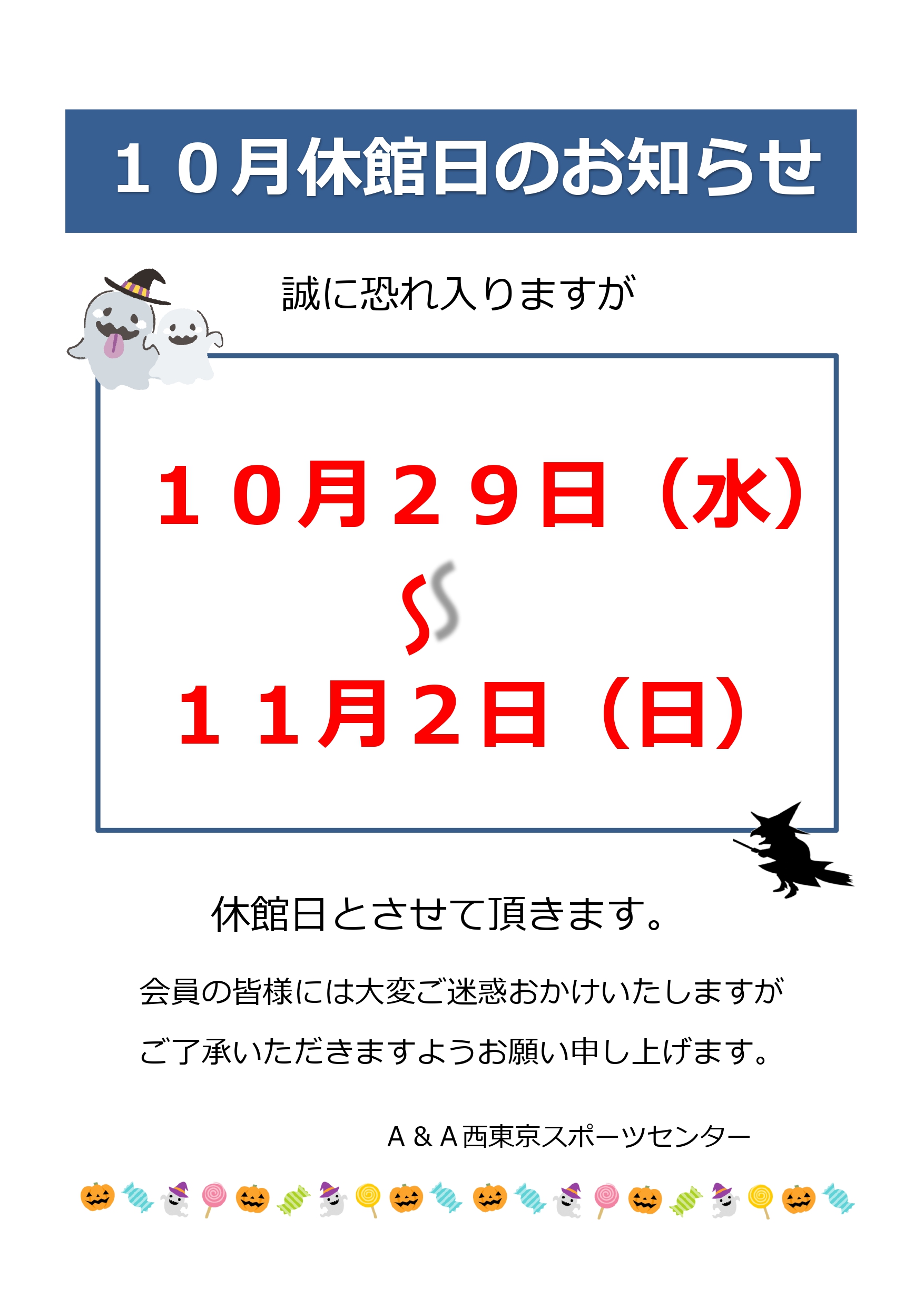 10月、11月休館日のお知らせ
